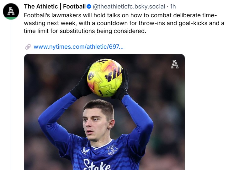 But the Iroegbunam Law is a solid one. When the Athletic decided to illustrate their news article with a picture to illustrate the frustration over time wasting they chose an Everton player. Vitaly Mykolenko, who rarely attempts a long throw in a team that rarely even throws it long, is seemingly the poster boy for timewasting in the Premier League.
